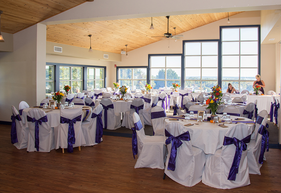 The Riverview Banquet Room is an excellent location for your next party, reception, meeting or other get-together. The seating capacity is 175 people in the spacious dining room overlooking the Wicomico River and the 18th hole of the golf course. Rent all or half of the facility. Call us today; our staff looks forward to working with you! Rental Rates Riverview.